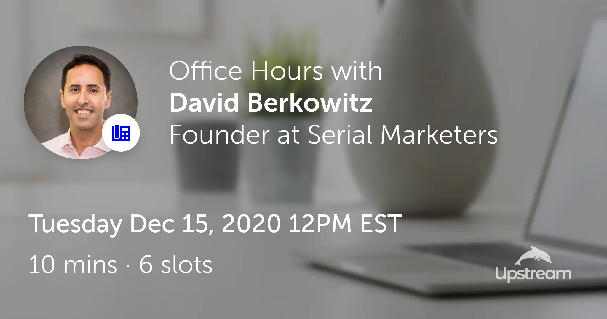 David Berkowitz is hosting Office Hours on Upstream on Tue Dec 15, 2020 12PM EST.