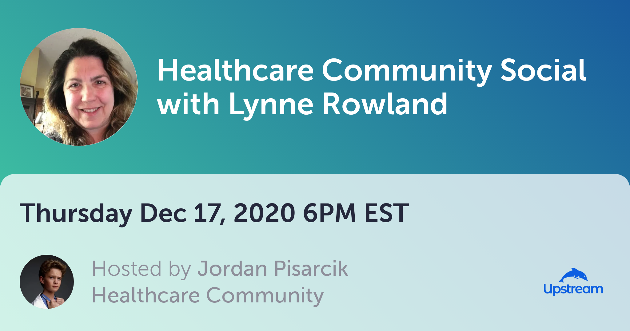 This will be the tenth virtual social of the Healthcare Community of Upstream, featuring guest speaker Lynne Rowland, SVP of Marketing and Communications at CAQH. After a brief intro from Jordan and an intro / Q&A session with our speaker, you’ll each be randomly paired with up to four other attendees for quick five-minute video chats. The entire event is only about 30-35 minutes in total, and will be a fun way to meet some very interesting people in healthcare and health tech. Please join us!