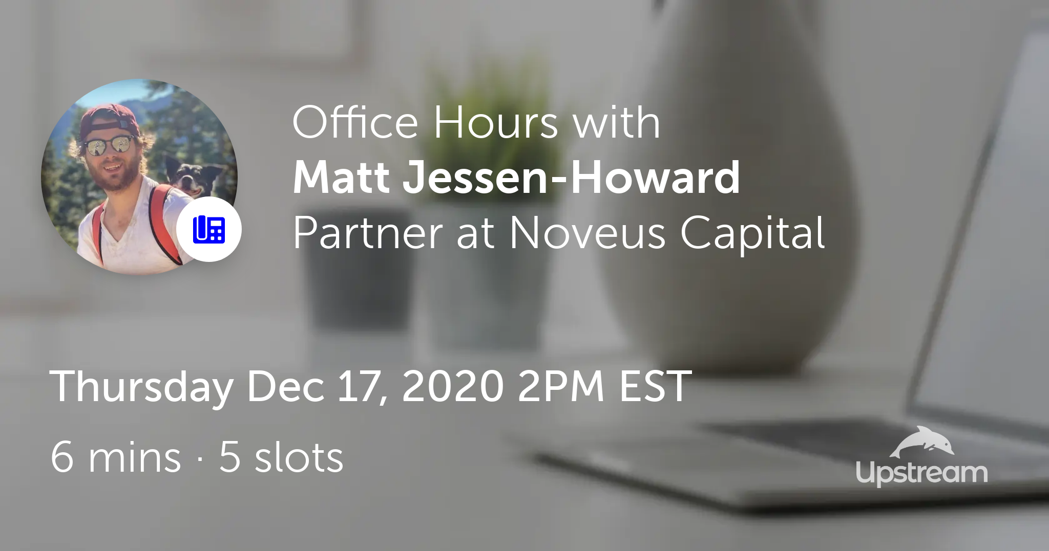 Matt Jessen-Howard is hosting Office Hours on Upstream on Thu Dec 17, 2020 2PM EST.